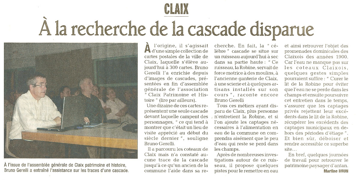 Accueil > Ça s’est passé à Claix > Histoire de Claix > La petite cascade retrouvée