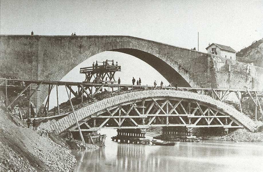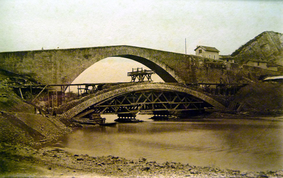 Nous avons également trouvé une deuxième photo de la construction du Pont de Claix (achevé en 1874) et en fouillant dans mes cartes postales j’ai retrouvé 2 vues du Pont de Claix antérieures à cette date (puisque le nouveau pont n’existait pas). Ce sont donc les 2 plus anciennes photos connues de Claix dont une est datée (sur la carte postale) de 1850.