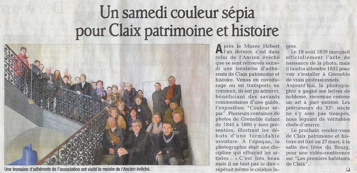 Samedi 23 janvier 2010, avec l’association Claix Patrimoine et Histoire nous nous sommes rendus au musée de l’ancien évêché à Grenoble pour voir l’exposition Couleur Sépia et nous avons découvert les premières photographies prises dans l’Isère à partir de 1850.