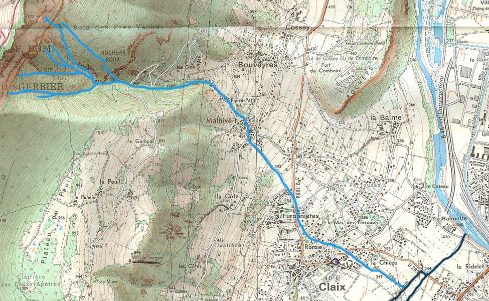 ... il fallait remonter le Rif Talon jusqu’à ses sources pour en savoir plus en empruntant le "Sentier de la vie" qui passe par le Peuil pour aller plus vite(voir la carte ci-dessus).