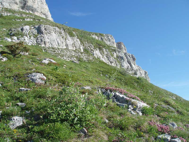 Pas la peine d’escalader les falaises pour voir les fleurs, il suffit de suivre la Pissarde sur sa rive droite (côté Varces) jusqu’à la lisière de la forêt au pied du Pic Saint Michel. Démarrez au dessus de Saint Imbert, vous pouvez monter en voiture jusqu’aux barrières des pistes forestières.