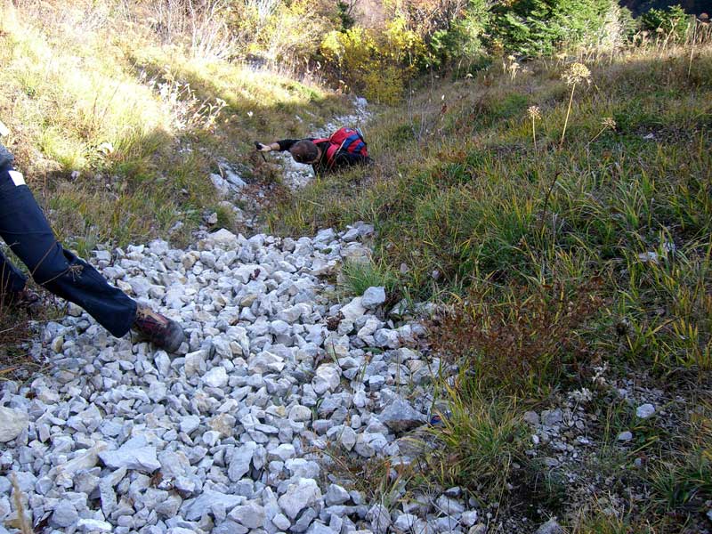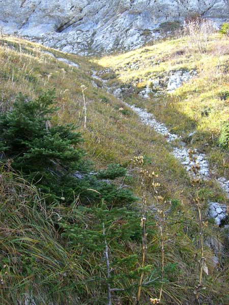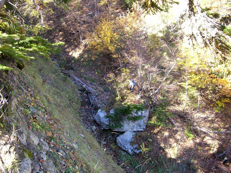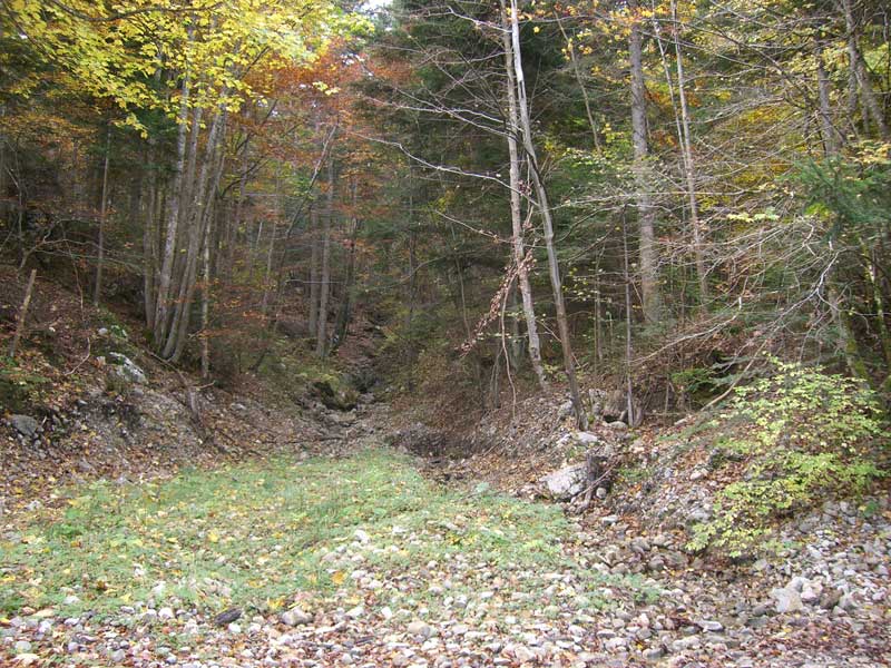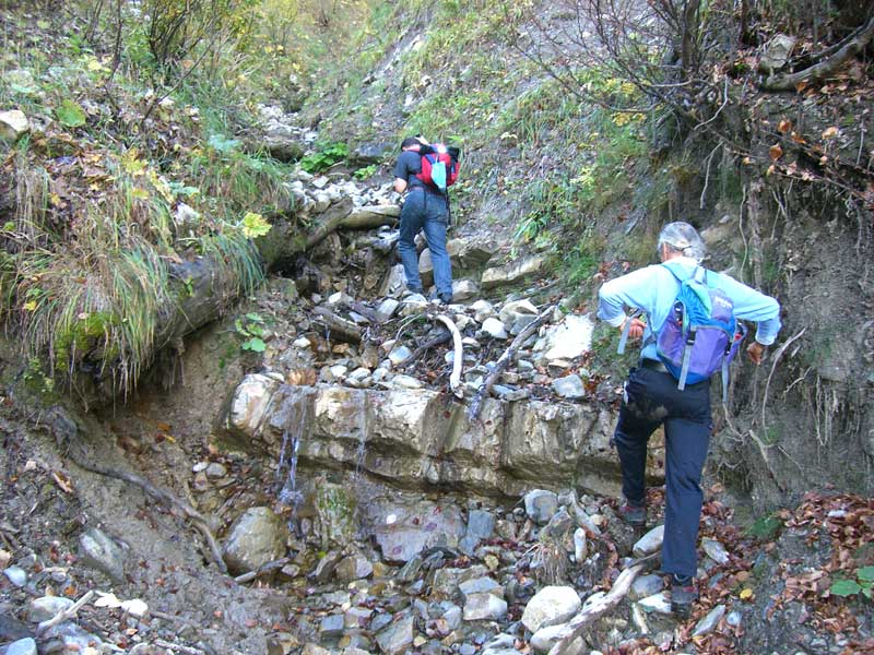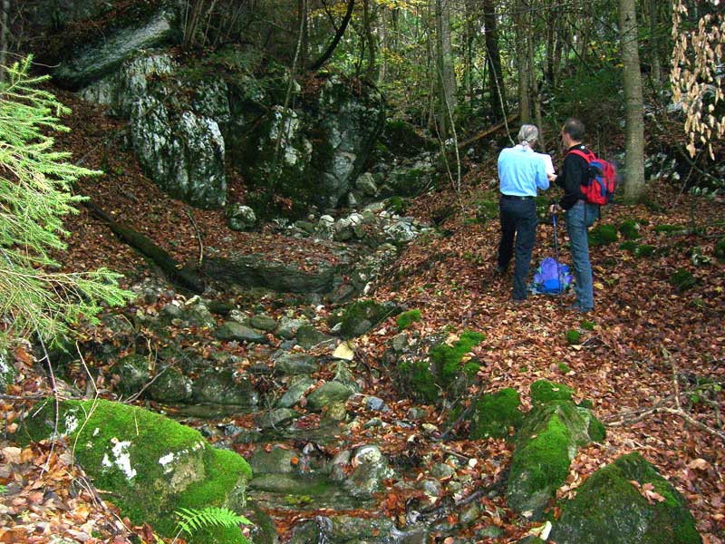 A cette période il y a peu d’eau dans la Pissarde, ça nous a permis de suivre au plus près le lit du ruisseau. Nous avons choisi de remonter la Pissarde jusqu’à sa source la plus lointaine, au pied du Pic Saint Michel en empruntant le lit principal qui sert de limite entre Claix et Varces.