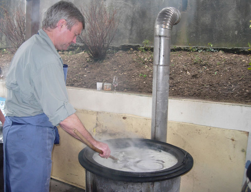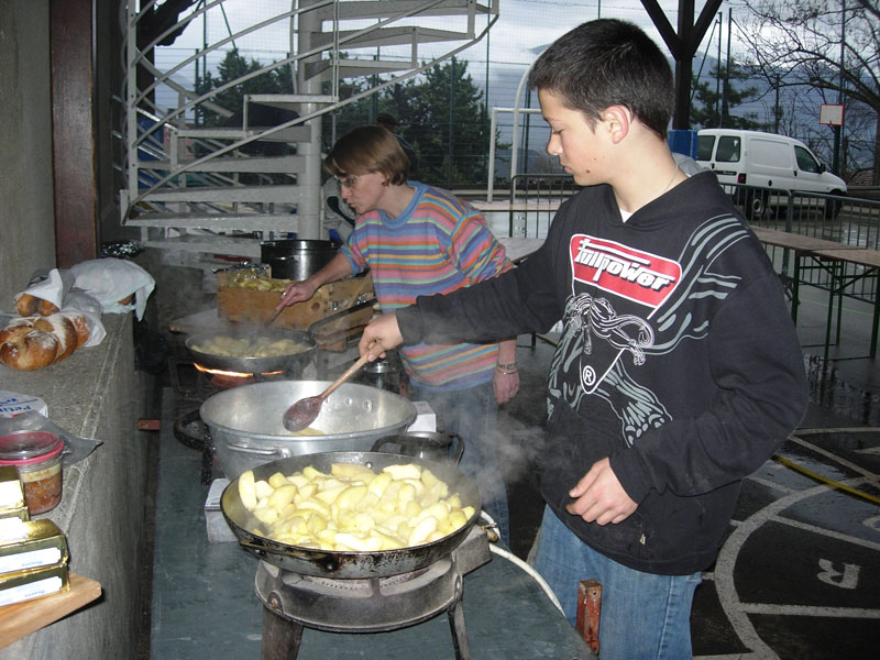 Les années se ressemblent... et les choses simples comme le boudin et quelques pommes cuites ont toujours autant de succès. Le succès, ce n’est pas tant de vendre du boudin en quantité - même si c’est l’objectif pour l’association des Parents d’élèves - le succès, c’est cette journée "hors du temps". Une mobilisation sans faille, préparée de longue date, un hameau qui se mobilise et qui se retrouve autour d’une cause commune : l’école !