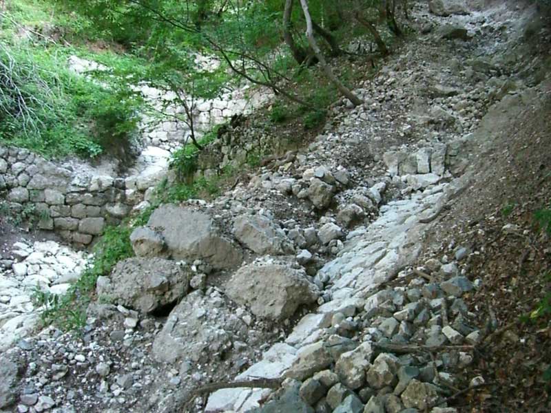 Visiblement, nos anciens avaient du cœur à l’ouvrage, et du savoir-faire : leurs maçonneries de pierres sont toujours là malgré le fort débit supporté et ont sans doute évité que les zones ou elles sont présentes subissent un trop fort ravinement. Chapeau bas ! Si les pièges à matériaux modernes sont utiles (lorsqu’ils sont vides...) à proximité du village, ils ne dispensent pas les propriétaires riverains d’entretenir le lit du torrent sur tout son cours.
