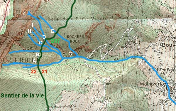... il fallait remonter le Rif Talon jusqu’à ses sources pour en savoir plus en empruntant le "Sentier de la vie" qui passe par le Peuil pour aller plus vite(voir la carte ci-dessus).