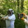 Dans le cadre du cours d’apiculture de la MJC, alors que nous étions occupés dans le rucher de Francis Cœur à la pose de grilles à pollen, à la sélection de reines pour de futurs essaims, Serge a aperçu un essaim dans la haie qui borde le rucher.