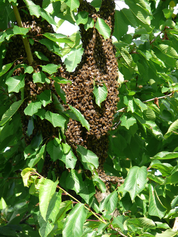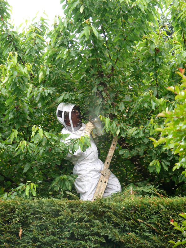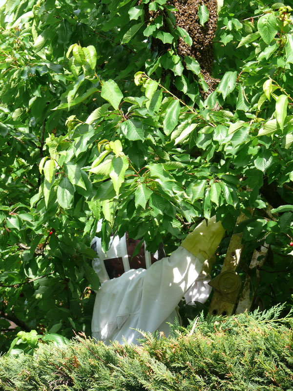 Samedi 15 juin 2013, j’ai été appelé par une amie (randonneuse du mardi) : un essaim avait pris pension dans son cerisier !