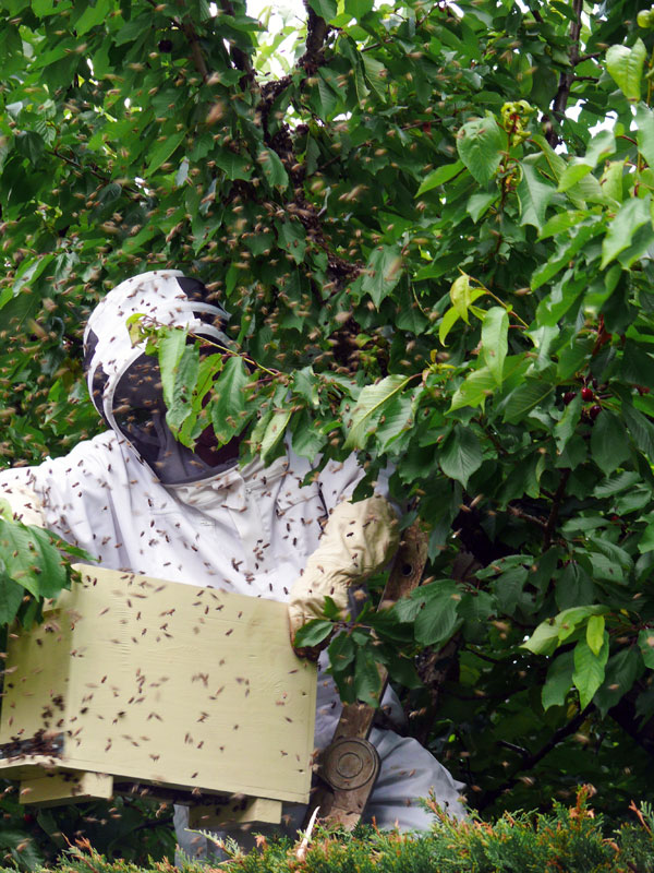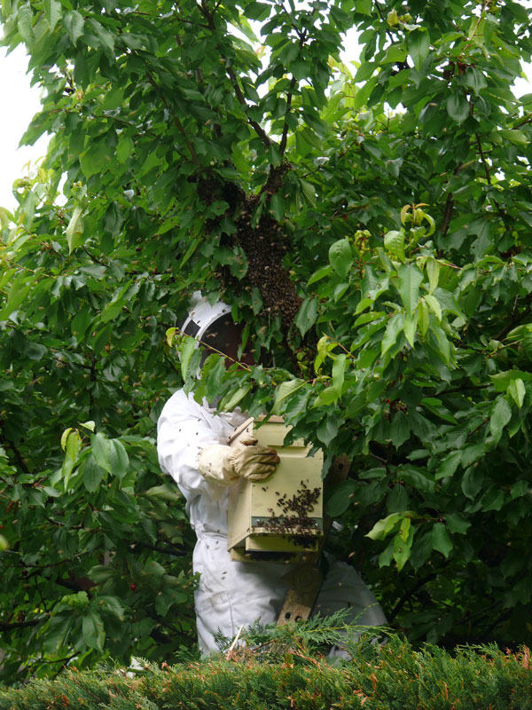10 - secouer régulièrement l’arbre et enfumer l’emplacement de l’essaim pour que les abeilles s’en éloignent et rejoignent la ruchette.