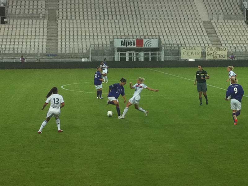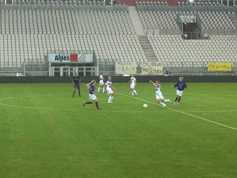 Il n’y avait pas photo entre les 2 équipes. il faut dire que l’OL constitue l’ossature de l’équipe de France féminine de foot. 6 joueuses de l’équipe de France, arrivée 4ème de la dernière coupe du monde de football féminin, étaient présentes au Stade des Alpes !