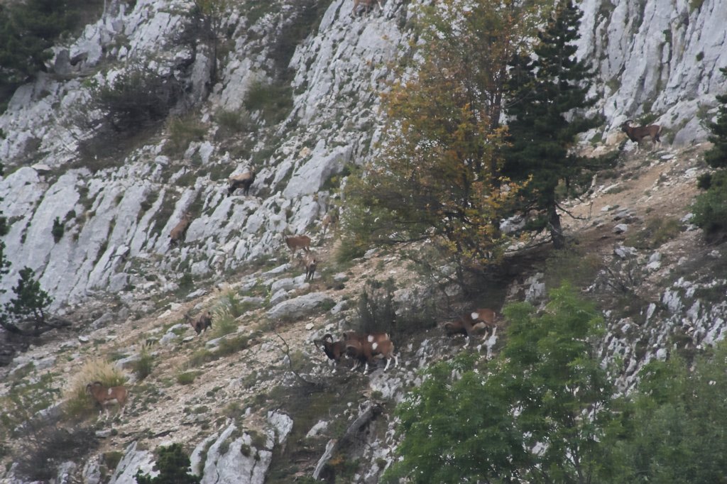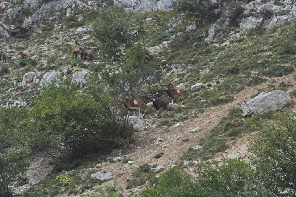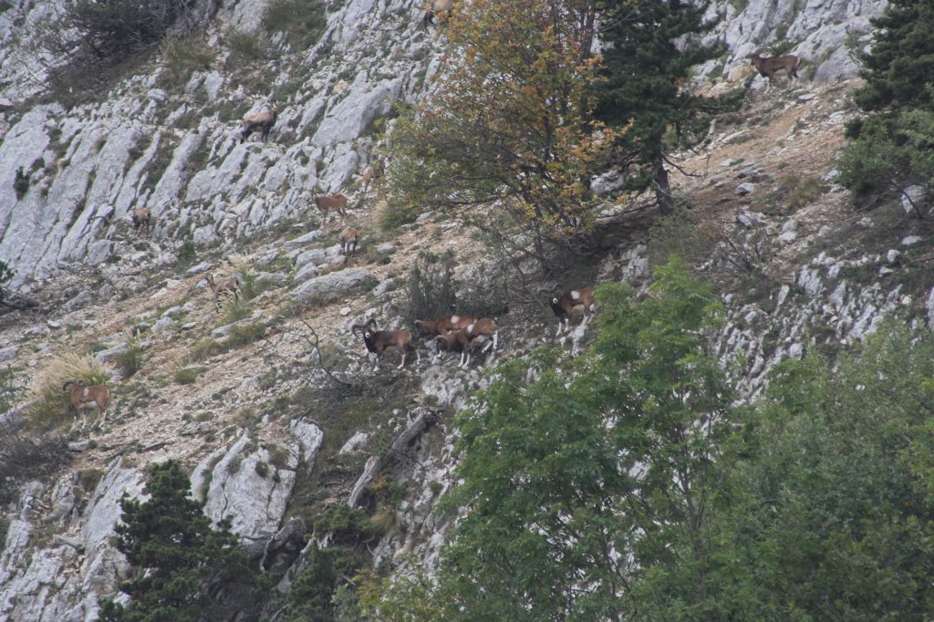 Nous avons aperçu 30 chamois et 4 mouflons. Il y en a probablement beaucoup plus, mais au dire des spécialistes, les conditions d’observation n’étaient pas optimales. Il y a en effet en cette saison trop de végétation qui dissimule les animaux pour faire un bon comptage.