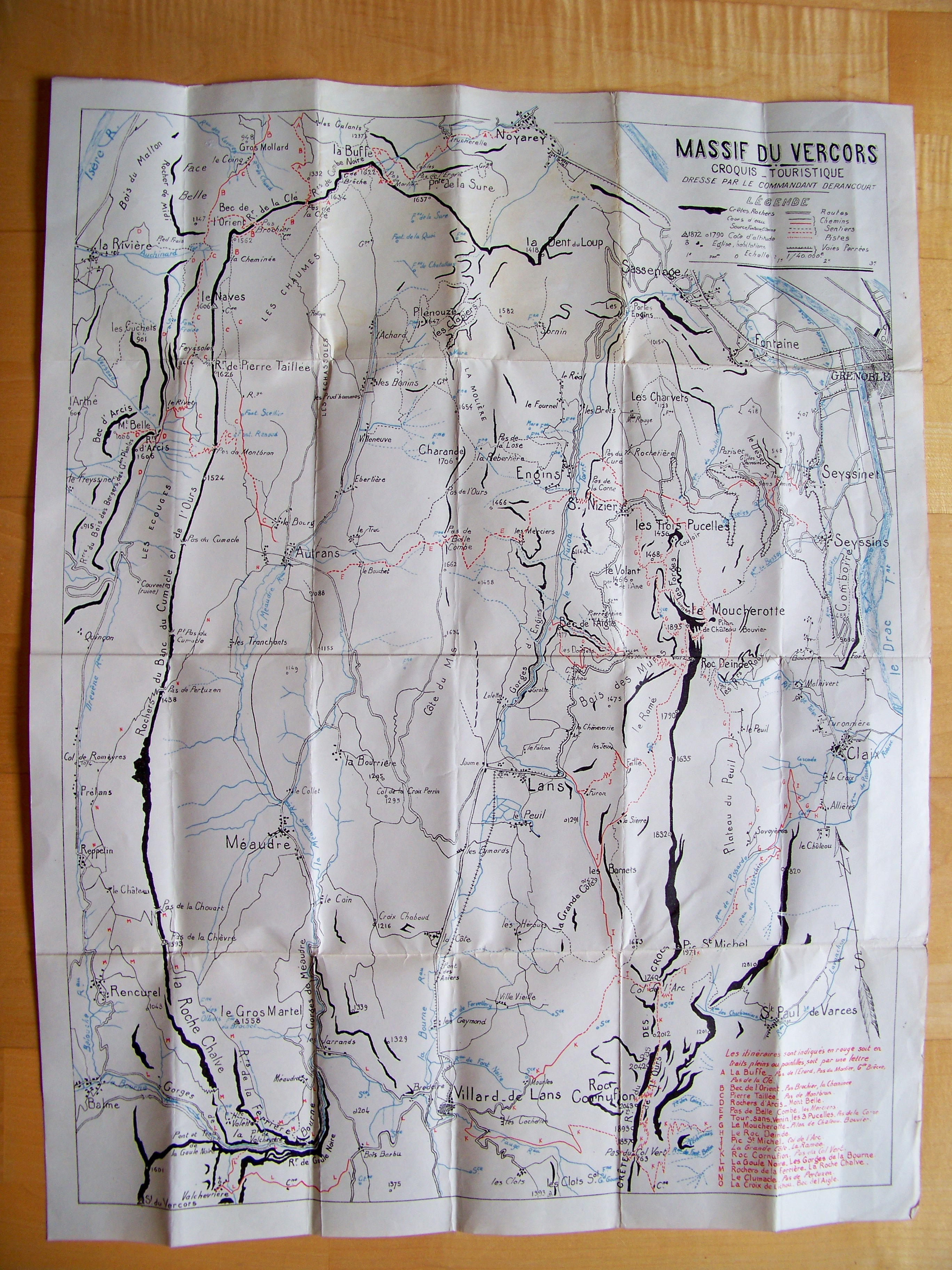 Toujours à la recherche de curiosités sur Claix, j’ai fait dernièrement l’acquisition d’un croquis touristique du massif du Vercors dressé par le commandant Derancourt.