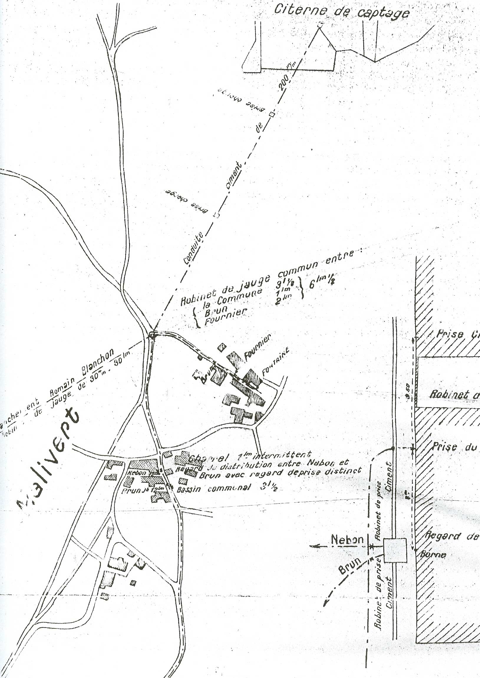 Ensuite les eaux, droit d’eaux et propriétés des captages ont été transférés à l’acquéreur du Château de la Balme (l’entrepreneur Debon) qui a crée le Syndicat des concessionnaires. Au passage la commune avait délibéré le 18 avril 1904 pour concéder à M. Debon le droit de canaliser et distribuer sur toute l’étendue de la commune les eaux captées sur les terrains Burdet (au dessus de Malhivert), à charge à lui de fournir gratuitement 22 l/mn à la commune. Et enfin, le 1er novembre 1926, était créée « l’Association des Eaux Burdet » qui perdure aujourd’hui, ce qui en fait la plus veille association Claixoise selon son Président.