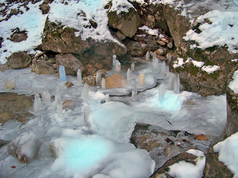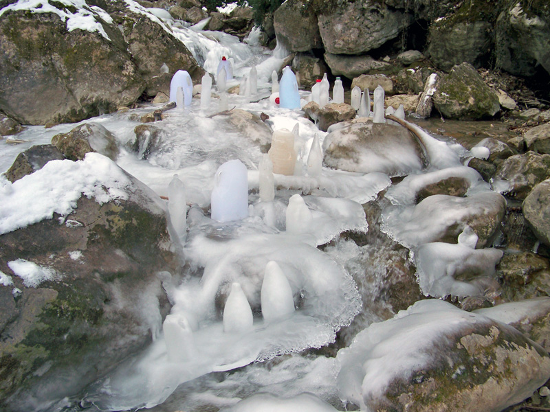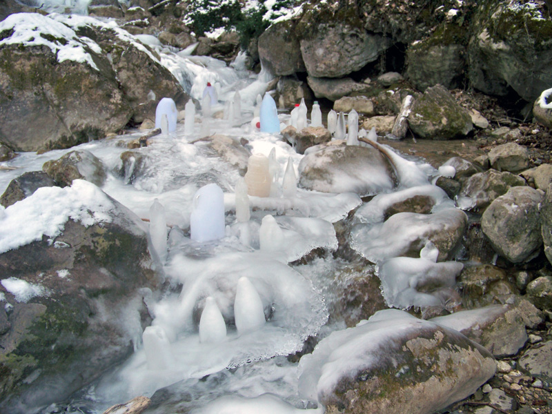Vous verrez également 3 photos d’une tentative artistique de sculpture glacée avec des bouteilles en plastique... Original mais je crains cependant que les bouteilles finissent en déchet dans le ruisseau...