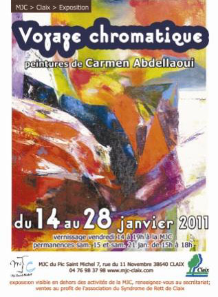 Vendredi soir la MJC affichait complet pour un voyage chromatique en compagnie de Carmen Abdellaoui qui exposait une très belle série de toiles que je vous invite à découvrir.