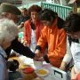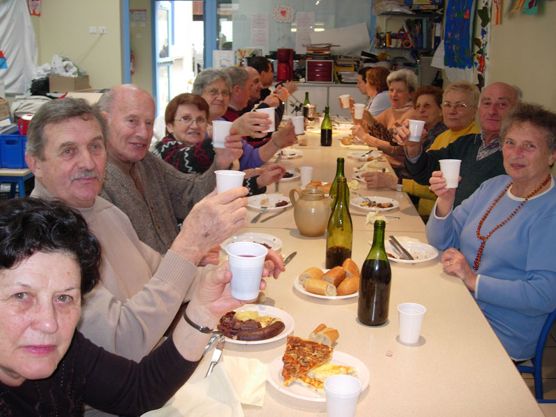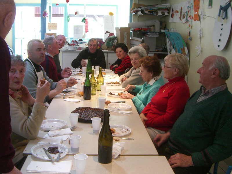 Quel que soit le temps, le boudin se déguste à l’extérieur, mais il y a une tradition bien ancrée : les anciens s’installent dans la cantine de l’école pour mieux apprécier ce moment. Chacun apporte un dessert et à la fin du repas, les producteurs locaux d’eau de vie, présents autour de la table, ne vous laissent pas repartir sans avoir dégusté un peu de leur nectar !
