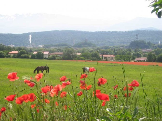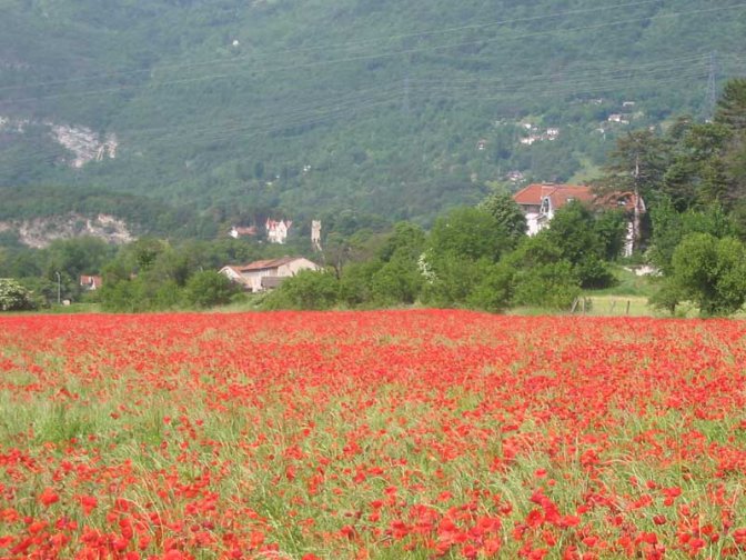 On passe à coté 4 fois par jour ! On voit vaguement quelques fleurs dans les champs.