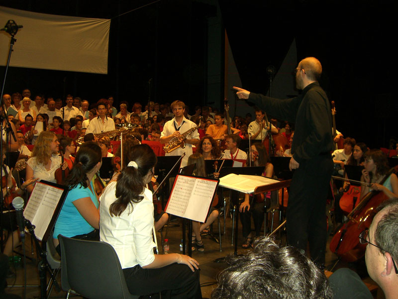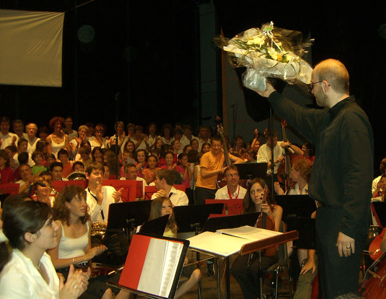 Afin de faire converger les élèves musiciens et chanteurs, enfants, adolescents et adultes ; les différents ensembles de l’E.M.F.V. (chorale adulte et chorale junior, ensemble guitares, orchestre à cordes, orchestre Junior, Big Band, Harmonie), autour d’un projet musical commun et de deux concerts exceptionnels, nous avons fait appel à un compositeur de talent, spécialiste de l’arrangement musical, Laurent Jacquier. Également pédagogue, Laurent Jacquier a enseigné la Formation musicale et dirigé l’Orchestre Junior au sein de l’Espace Musical.