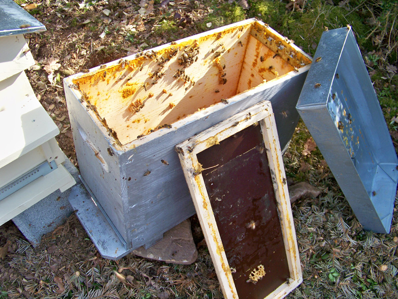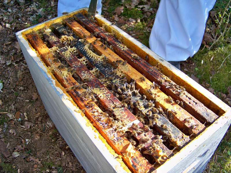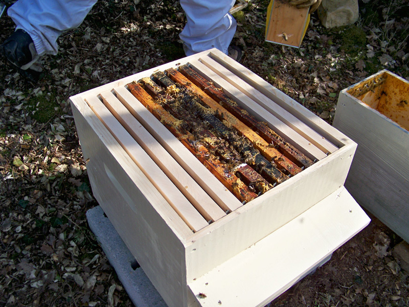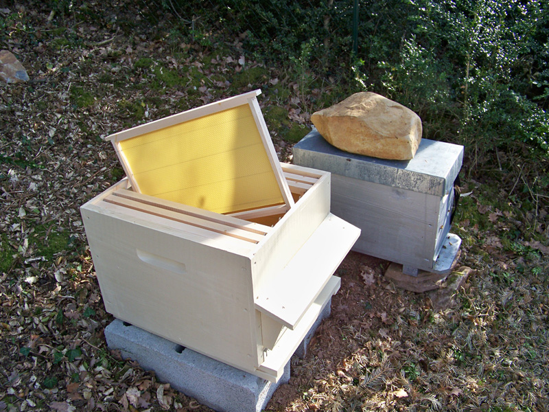 - Refermer la ruche en n’oubliant pas de mettre un peu de nourriture sur les cadres (sucre candi pour booster un peu le redémarrage de l’essaim).