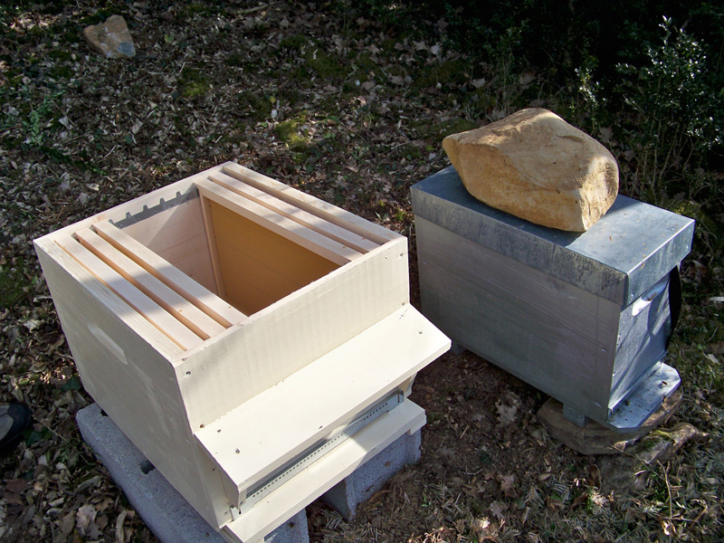 Si l’essaim se développe normalement... d’ici un mois j’ajouterai une hausse à la ruche pour que les abeilles déposent gentiment le miel d’acacia qu’elles ne manqueront pas de faire après avoir butiné dans le bois voisin.