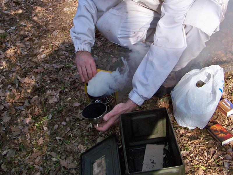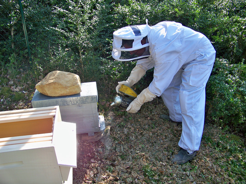 - Enfumer les abeilles pour leur provoquer du stress. Les abeilles vont ainsi immédiatement consommer du miel ce qui les rend plus calmes.