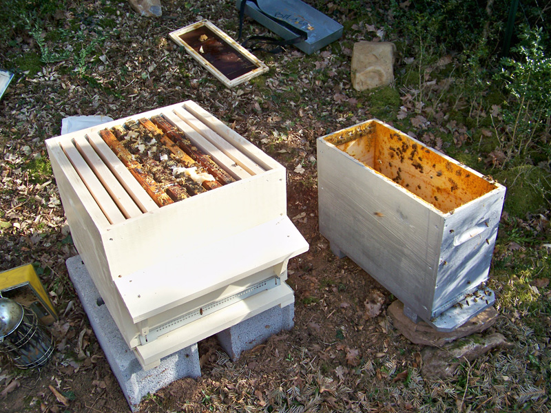 Mise en place de l’essaim dans la ruche par Brunogere
