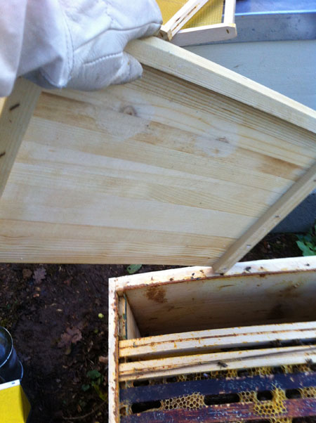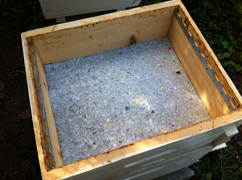 On isole le sommet de la ruche pour mieux conserver la chaleur produite par les abeilles.