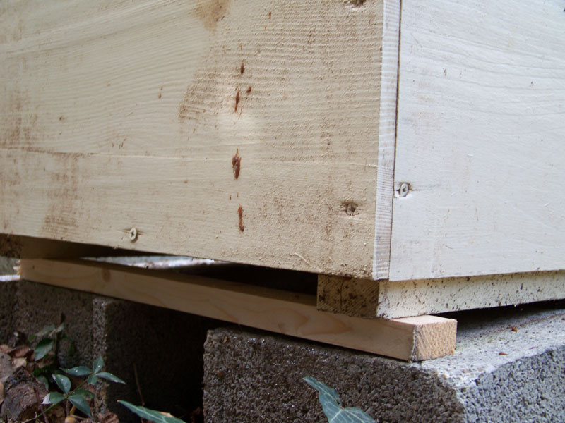 Et si la ruche n’est pas équipée d’une grille au plancher, il faut légèrement l’incliner pour laisser l’eau de condensation s’évacuer.