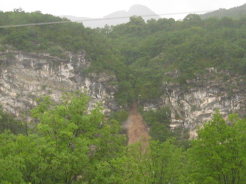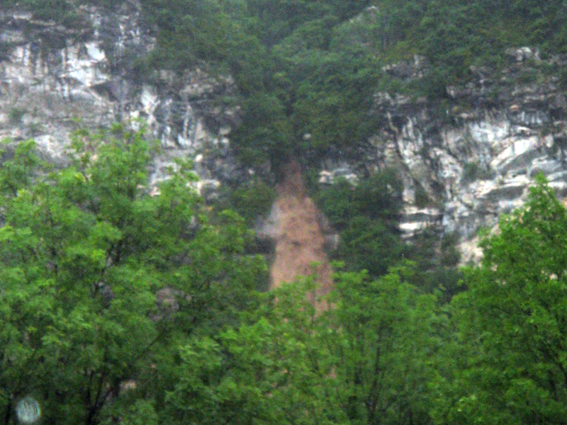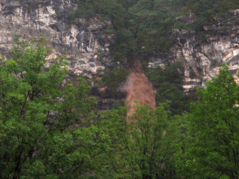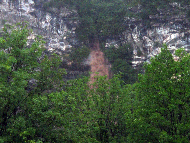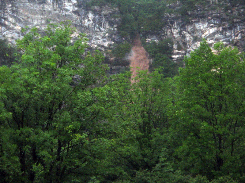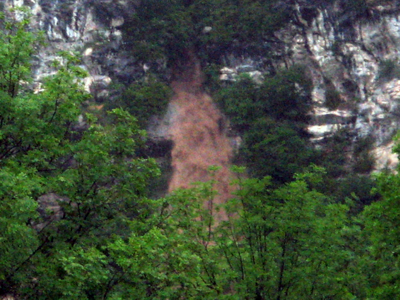 C’est le bruit anormal de la cascade qui a attiré mon attention quand je suis sorti le jeudi 17 juin au matin pour aller travailler. Il avait fait un gros orage dans la nuit, orage qui succédait à plusieurs jours de pluie.