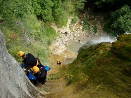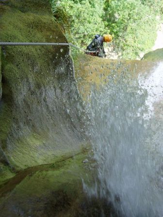 J’avais déjà vu quelquefois au courant de l’été de drôles de petits bonshommes pendus au bout d’une corde prendre une douche sous la Pissarde. Mais en fait, il ne s’agissait pas d’hygiène… mais de canyoning ! ;-)