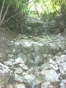 La réalité est probablement plus simple, en tout cas c’est l’opinion que je me suis forgée en remontant à pied le lit du ruisseau : un orage plus violent que d’habitude... des trombes d’eau qui arrachent la terre le long du ruisseau et qui organisent ... un grand curage que la main de l’homme ne fait plus depuis de nombreuses années ! Le tout combiné avec un goulot d’étranglement à l’entrée du village qui a fait sortir le Rif talon de son lit.