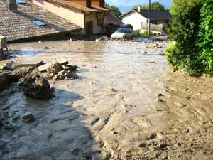 Cette fois la rapidité du phénomène a surpris tout le monde, un grand bruit de cailloux qui s’entrechoquent et quelques instants après un torrent de boue qui déboule dans les rues et les cours de Malhivert.