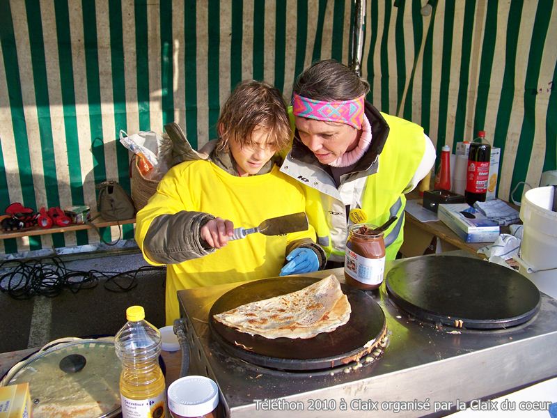 Au programme, le traditionnel déjeuner sur la place de Carrefour Market organisé par la Claix du cœur avec les adominots de la MJC pour faire les crêpes : original de prendre son petit déjeuner dehors quand il fait -5°C ! Une urne placée devant le centre commercial du Bourg, Rachel Bel de l’UNRPA qui organise une tombola pour gagner un panier garni et enfin un repas dansant organisé par le CCJ, le club de twirling bâton qui réunit les communes de Claix, Champ sur Drac et Jarrie. Lors de cette soirée nous avons eu le plaisir de découvrir le club de danse en ligne de Pont de Claix ainsi que les danseurs de rock acrobatique de l’école "Les planches" de Grenoble.