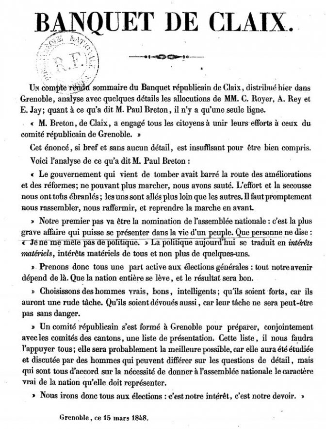 Accueil > Ça s’est passé à Claix > Histoire de Claix > Le banquet de Claix