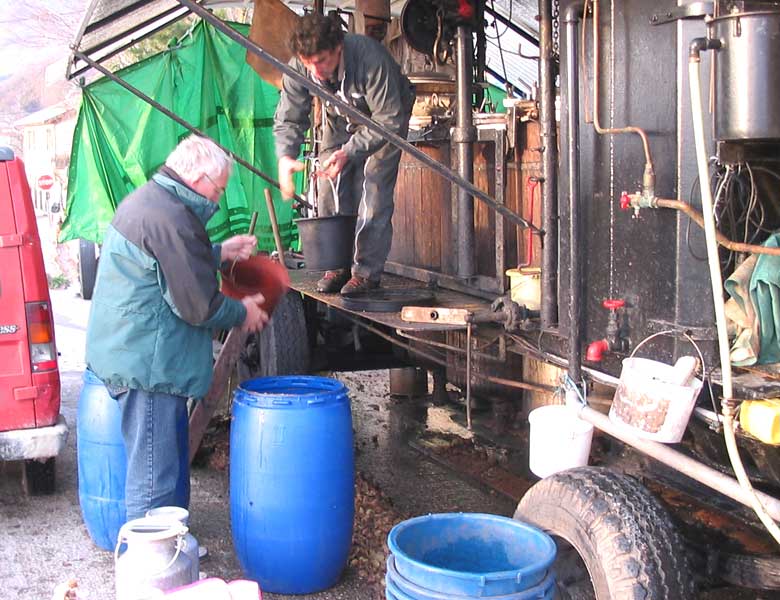 On ne sait jamais à l’avance quand il va arriver, en janvier, en février ou en mars, c’est selon la saison et selon la quantité de fruits qu’il doit distiller dans les différents villages où il s’arrête. Quand on lui demande où il sera la semaine prochaine il répond : « ça c’est mon affaire pas la vôtre ! » avec une autorité qui inspire le respect et qui n’appelle plus aucune question ! Nous n’en saurons pas plus sur son métier...