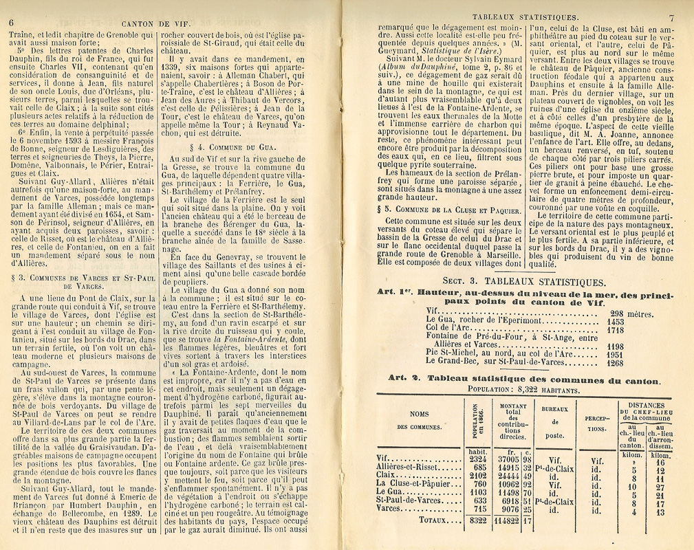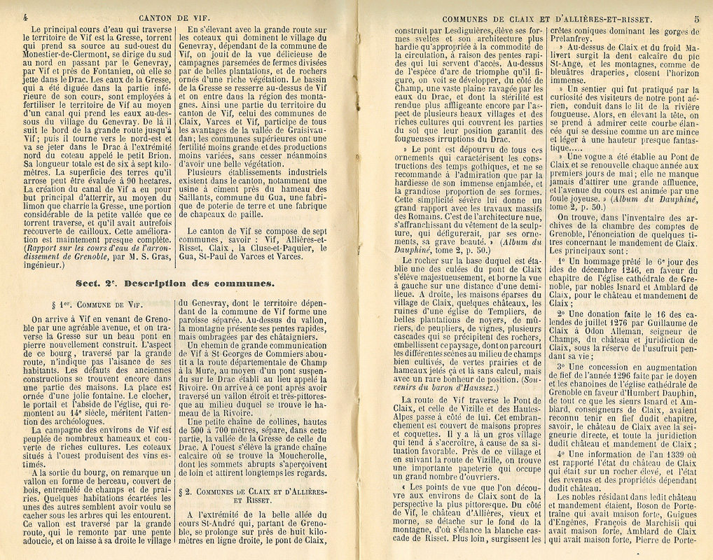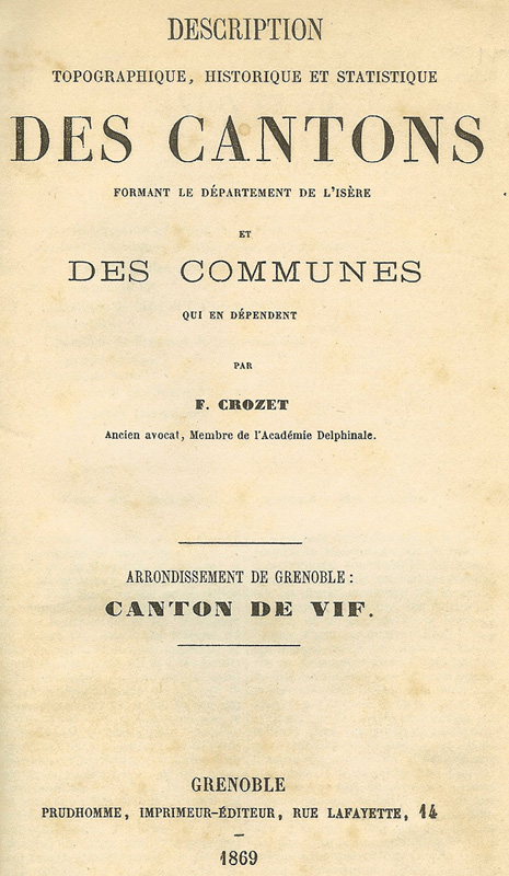 C’est en furetant lors d’une vente de carte postales, à la recherche de vieilles cartes postales de Claix, que j’ai trouvé ce fascicule qui décrit le canton de Vif en 1869.
