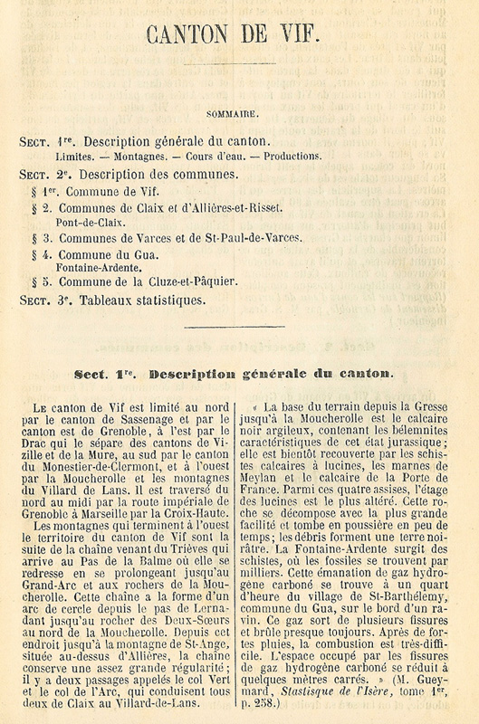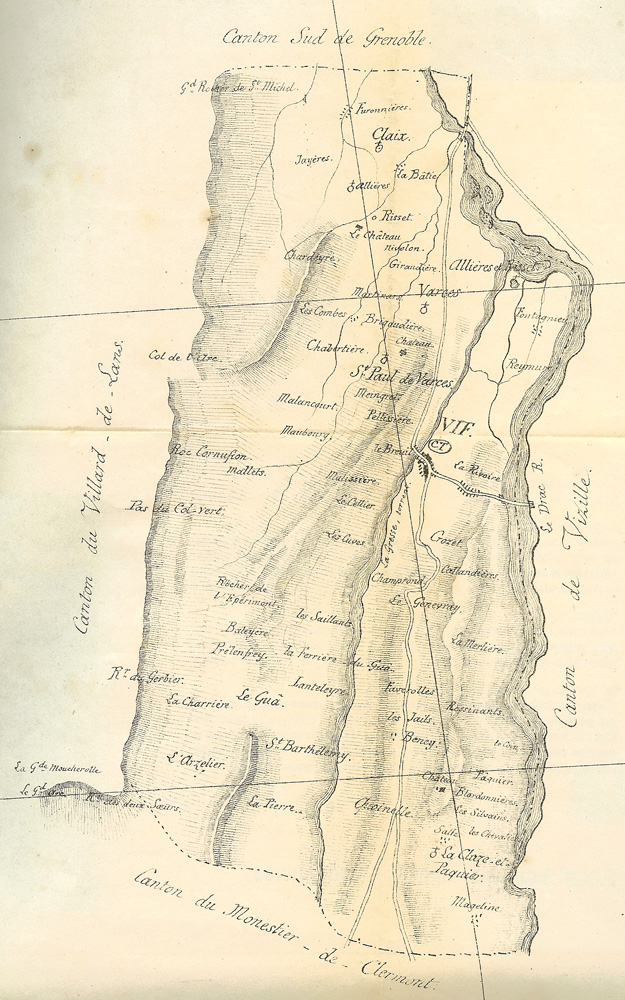 Ce document qui est antérieur à la création de la commune du Pont de Claix préfigure cette création puisque le quartier du Pont de Claix (détaché de Claix seulement en 1873) n’est pas dans le canton de Vif et ne figure pas sur le plan joint à ce fascicule.