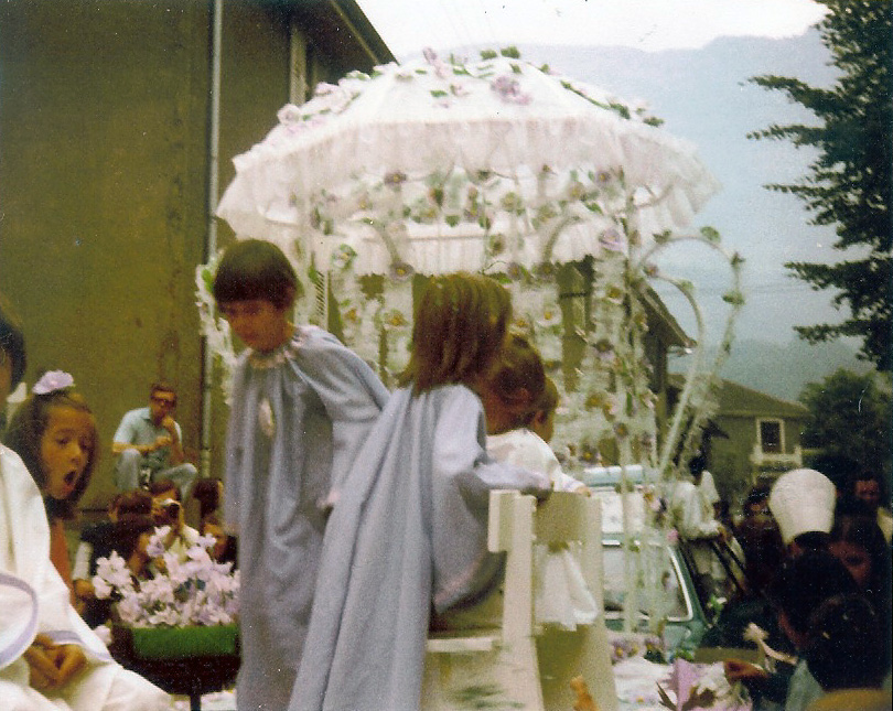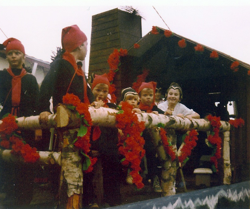 La semaine dernière je vous ai présenté quelques vues du corso de Claix de 1977. Cela a donné l’idée à Agnès (2éme photo plus bas) de plonger dans ses photos de jeunesse. Quelques scans plus tard, accompagnés de quelques retouches avec Photoshop, les photos retrouvent un peu de leur jeunesse.