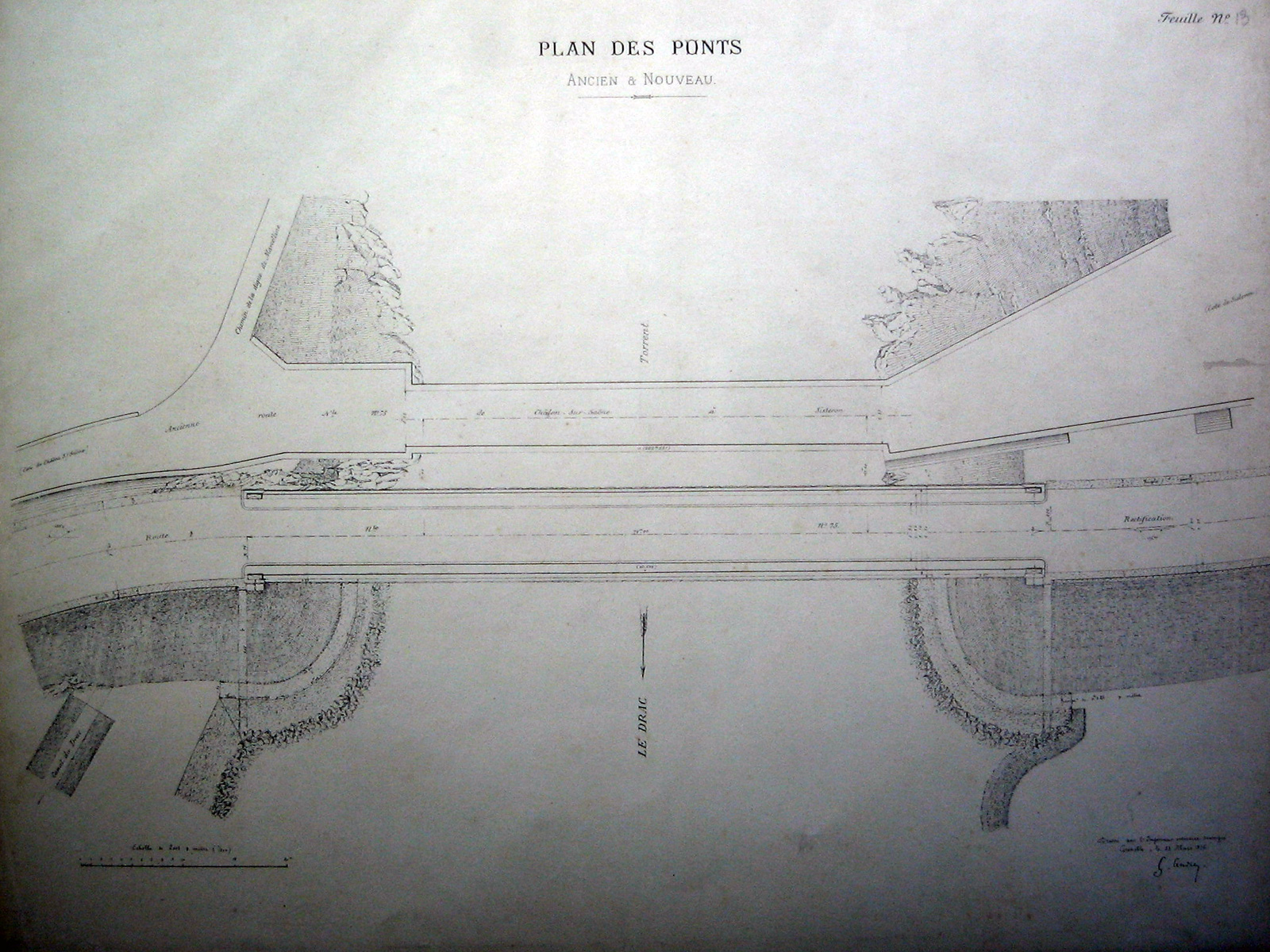 Je vous propose quelques photos de la construction de ce pont et surtout de superbes plans découverts aux archives municipales de Pont de Claix.