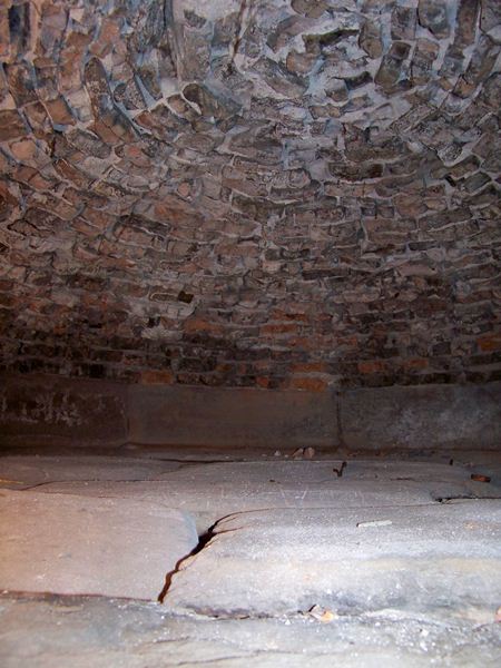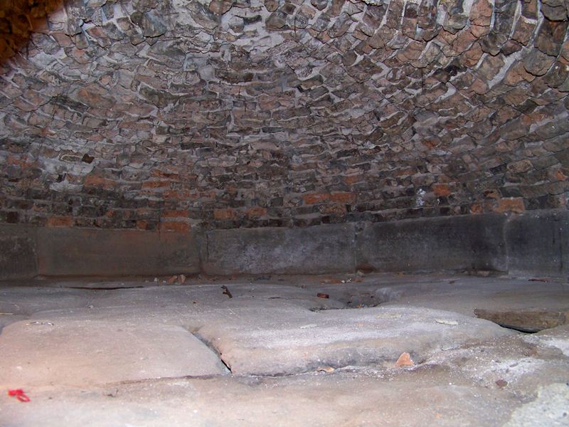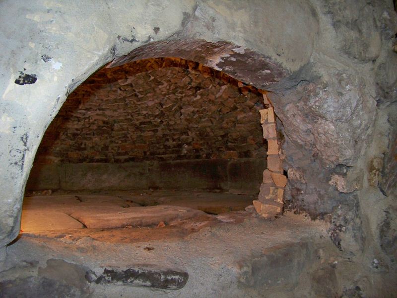 Le briques de la voute semblent être une réutilisation de briques réfractaires d’un ancien four, qui naturellement ne pouvait pas être en calcaire.