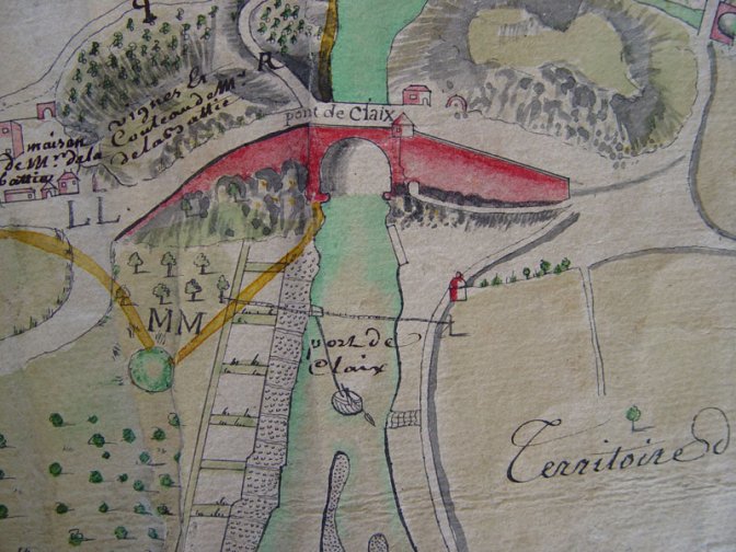 Jean-Claude Michel en a déduit que ce four était représenté sur un vieux plan de Claix par le petit demi-cercle rouge à droite du pont.
