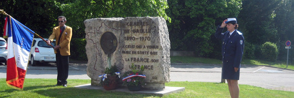 Le quatrième monument est situé devant la halte garderie (Parc Charles de Gaulle), il a été érigé à la mémoire du Général de Gaulle.