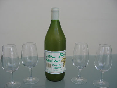 Cette boisson n’est plus du jus de raisin mais pas encore du vin, elle pétille un peu, est de couleur jaune pâle un peu trouble (lie et levures), faiblement alcoolisée et a un bon goût de raisin sucré. C’est en fait le premier écoulement du tonneau, prélevé durant les premiers jours de fermentation et non séparé de la lie. Une fois mis en bouteille il continue de fermenter, c’est pourquoi il n’est pas bouché hermétiquement, mais fermé par une capsule percée et transporté verticalement. On peut en boire à partir de mi-septembre et pendant quelques semaines seulement. On dit communément que c’est un vin fugace : dès que la fermentation est achevée, le Bourru n’est plus. Il est connu dans beaucoup de régions françaises principalement viticoles, mais aussi en suisse et en Tchéquie. Il existe principalement en blanc et beaucoup plus rarement en rouge. C’était à l’origine la boisson des vendangeurs. La fête du vin Bourru est célébrée dans beaucoup de régions (Bourgogne, Vaucluse, Lubéron, Gironde....). C’est la boisson idéale pour accompagner les premières châtaignes.