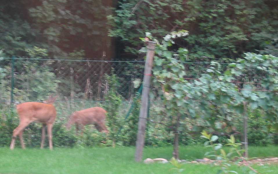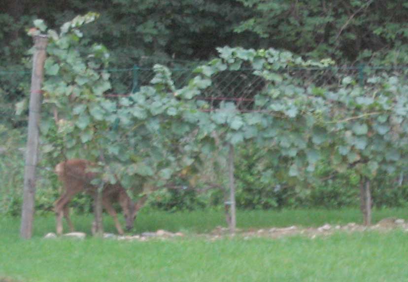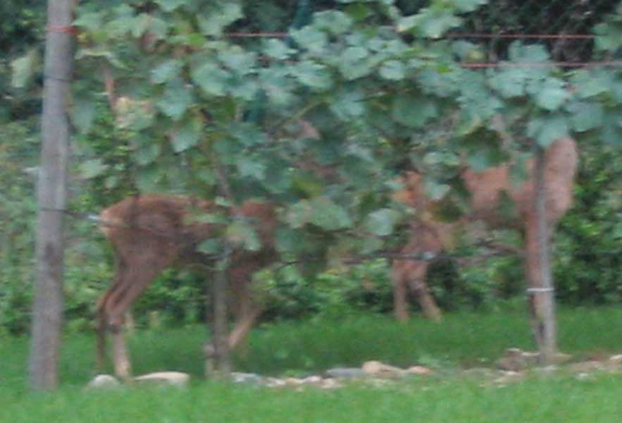 Décidément la nature ne se laisse pas dompter si facilement ! Après la grêle, les merles, cette fois ce sont les chevreuils qui viennent faire les vendanges.