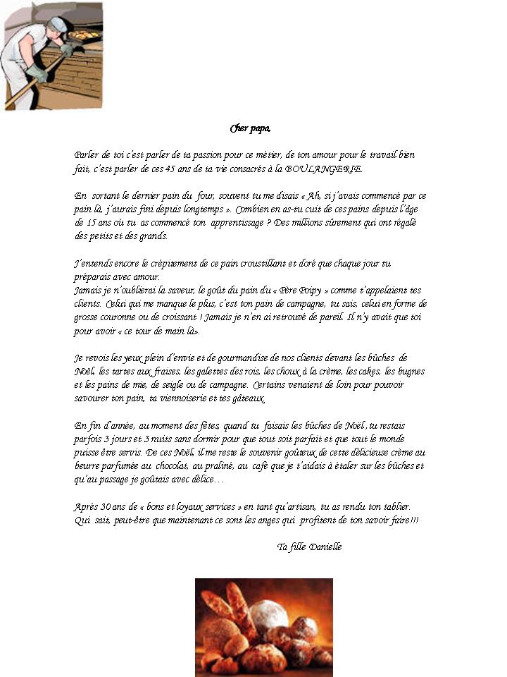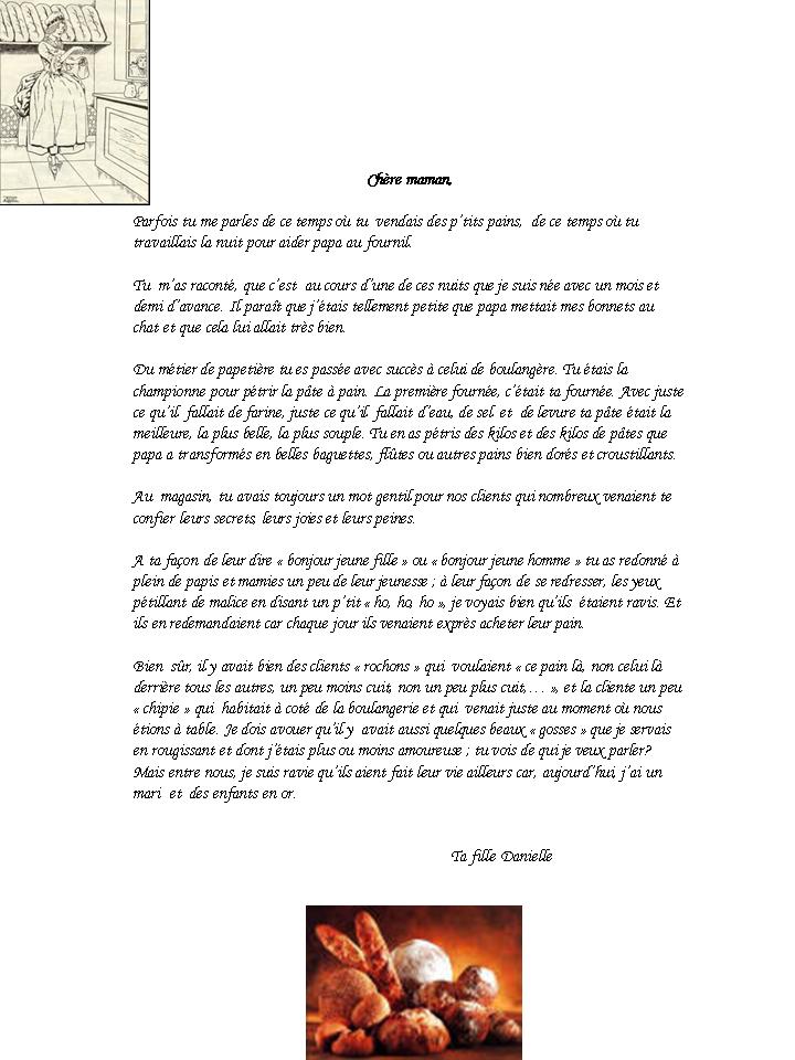 Et là Danielle nous a émus en nous entraînant dans son enfance avec ses parents boulangers. En fait il s’agit d’un hommage à ses parents. Nostalgie d’une époque disparue, nostalgie des bonnes odeurs de pain...