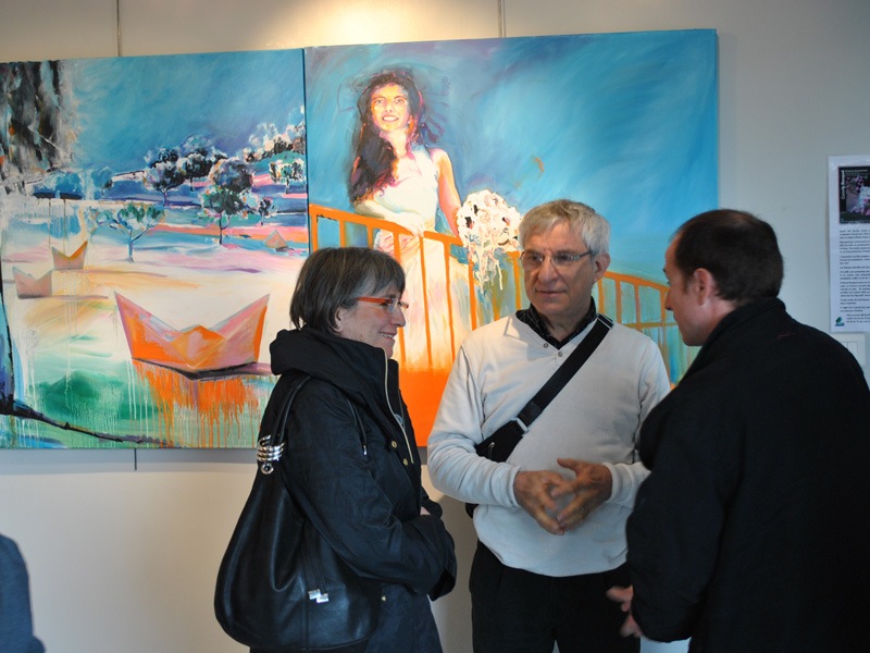 je vous propose quelques photos du vernissage et quelques vues de ses toiles... en attendant plus. N’hésitez pas à zoomer pour visualiser les 3 tableaux exposés à la Mairie.