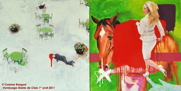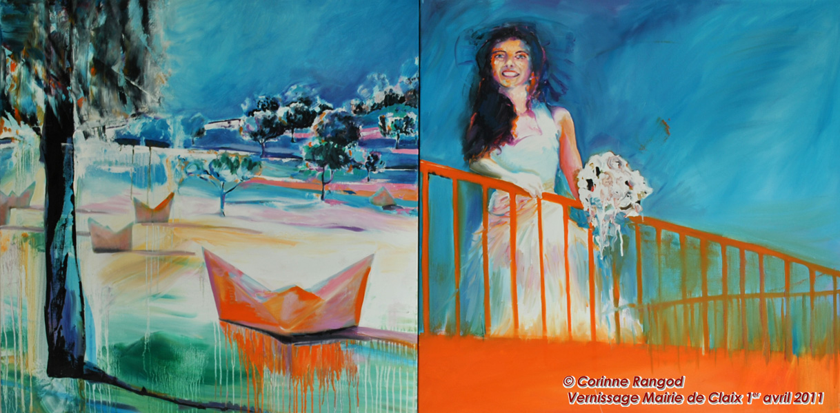 Aujourd’hui il me semble que Corinne change de dimension et je ne parle pas seulement de la taille des tableaux qu’elle expose à la Mairie de Claix et à la MJC.