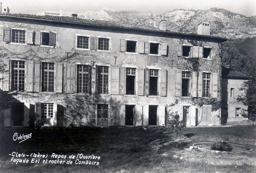 « A l’origine maison forte médiévale, le château fut, pour l’essentiel reconstruit au milieu du XVIIème siècle par Ennemond de Servien. De cette époque pourrait dater l’exceptionnel escalier d’honneur à noyau central ajouré qui présente de grandes analogies avec l’escalier du château de Sassenage ». (Source Jean-Claude Michel – Histoire de Claix). Le château a également servit de maison de repos (voir la carte postale du début du siècle dernier). Il est maintenant transformé en logements.