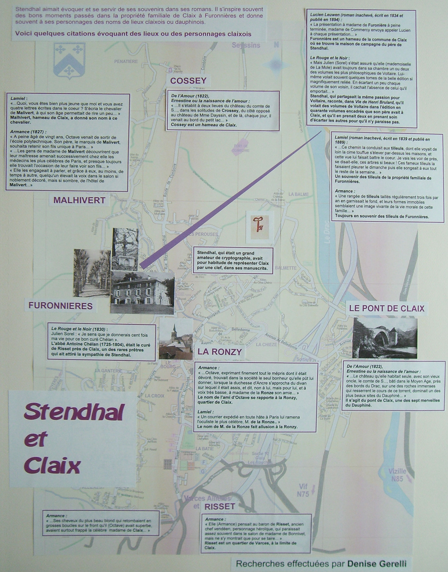 D’autre part, Stendhal qui était un grand amateur de cryptographie, avait pour habitude de représenter Claix par une clef, dans ses manuscrits.