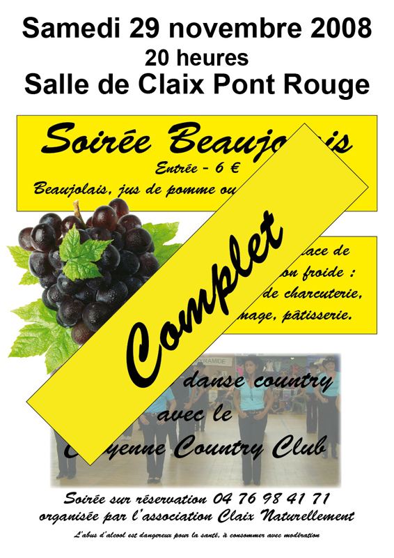 propose une soirée beaujolais (nouveau c’est la saison !) et une animation ainsi que des démos de danse country avec la participation du Cheyenne Country Club
