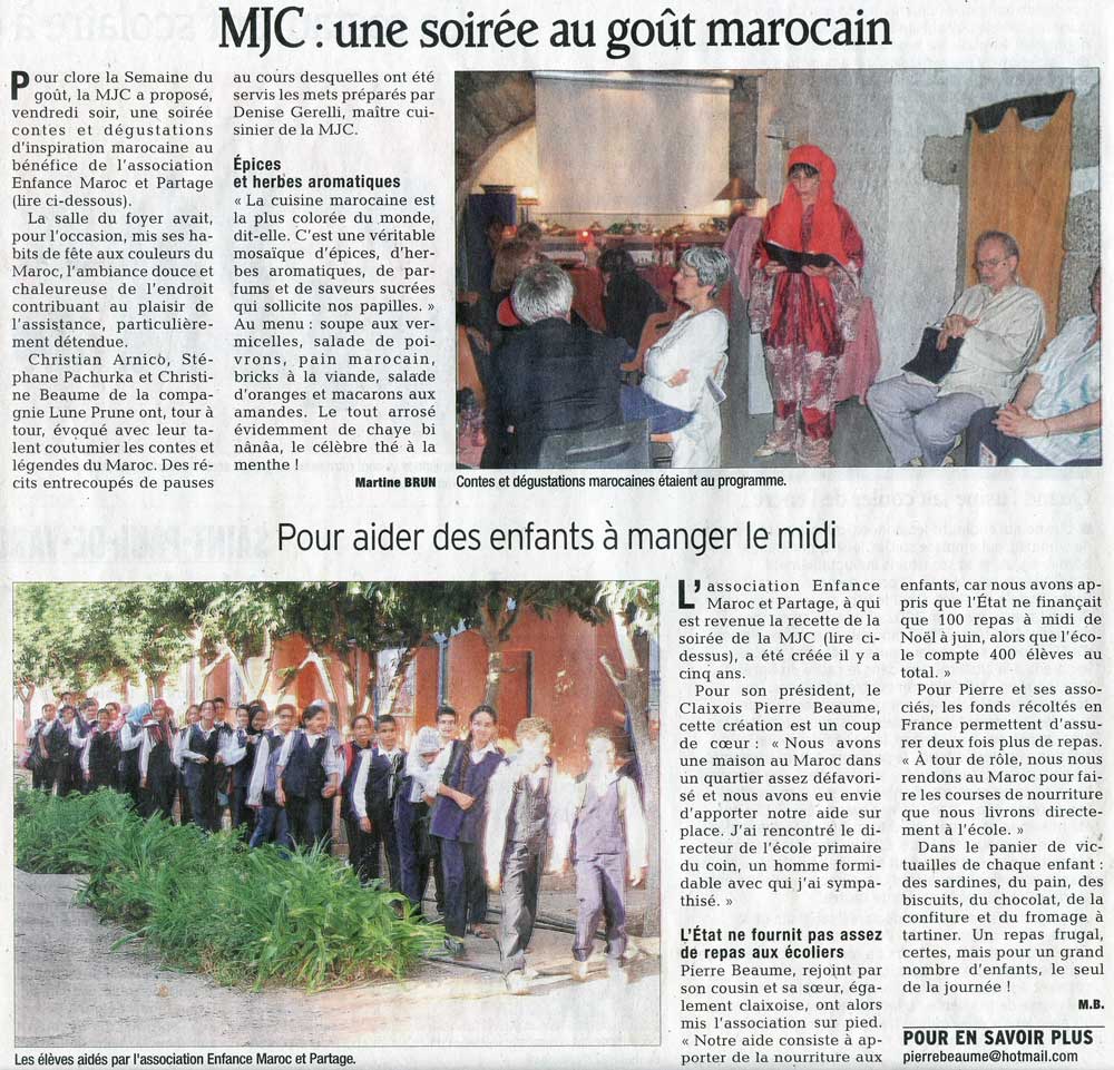 Accueil > Ça s’est passé à Claix > Claix au fil des jours > Soirée claixoise au bénéfice d’Enfance Maroc Partage